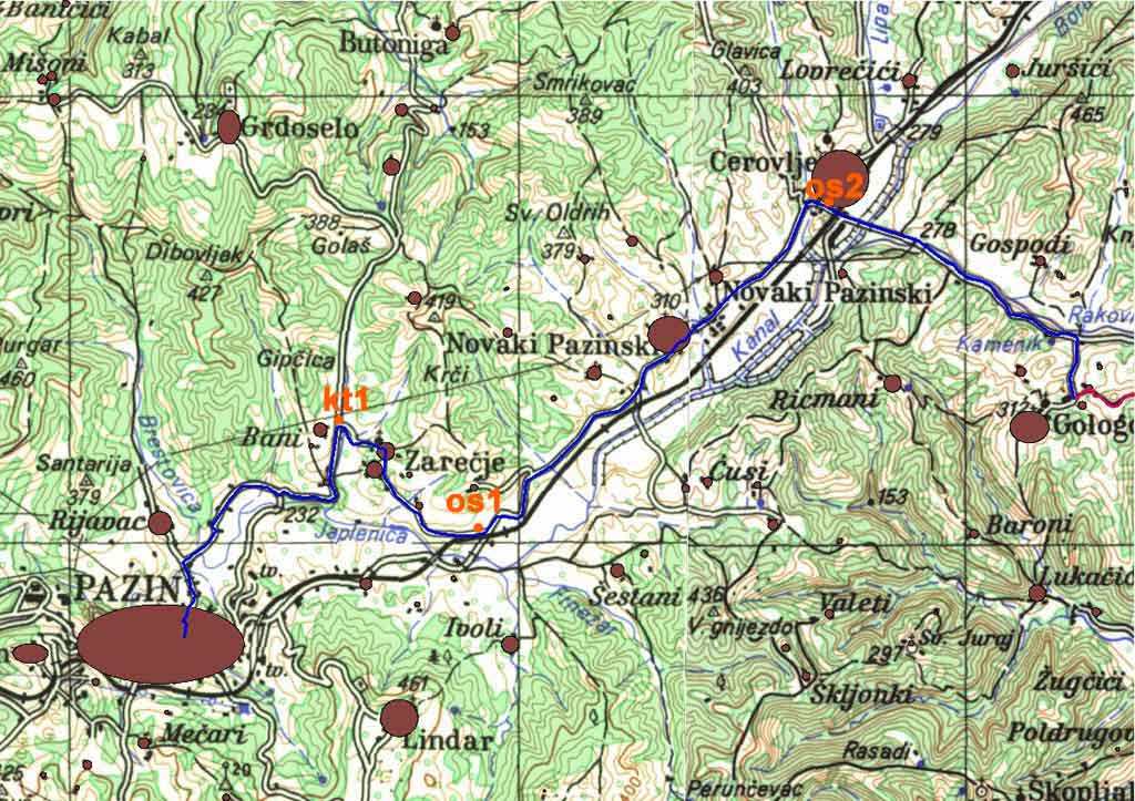 Cijela dionica biti će markirana i  pokrivena volonterima te oznakama za udaljenost svaka 2 km, a ujedno će imati kt1 (kontrolna točka) na skretanju sa ceste Pazin-Grdoselo prema Zarečju te dvije okrijepne stanice (os1/os2), prva nakon Zarečja (5,3 km) a druga u Cerovlju (10 km).