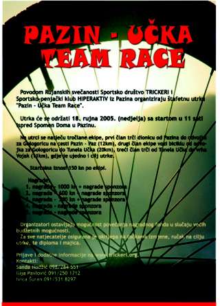 Utrka će se odrľati 18. rujna 2005. (nedjelja) sa startom u 11:30 sati ispred Spomen Doma u Pazinu. Prijave su od 10:00 do 11:00.